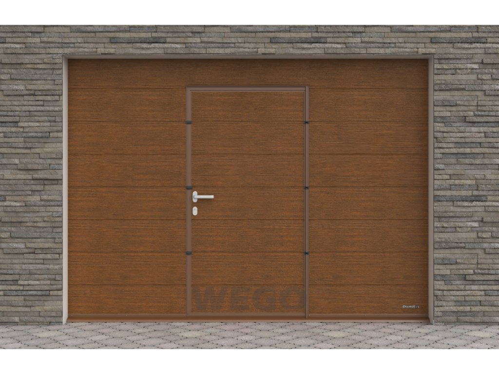 Sektionales Garagentor mit Tür, GoldenOak, WOODGRAIN, mittlere Sicke