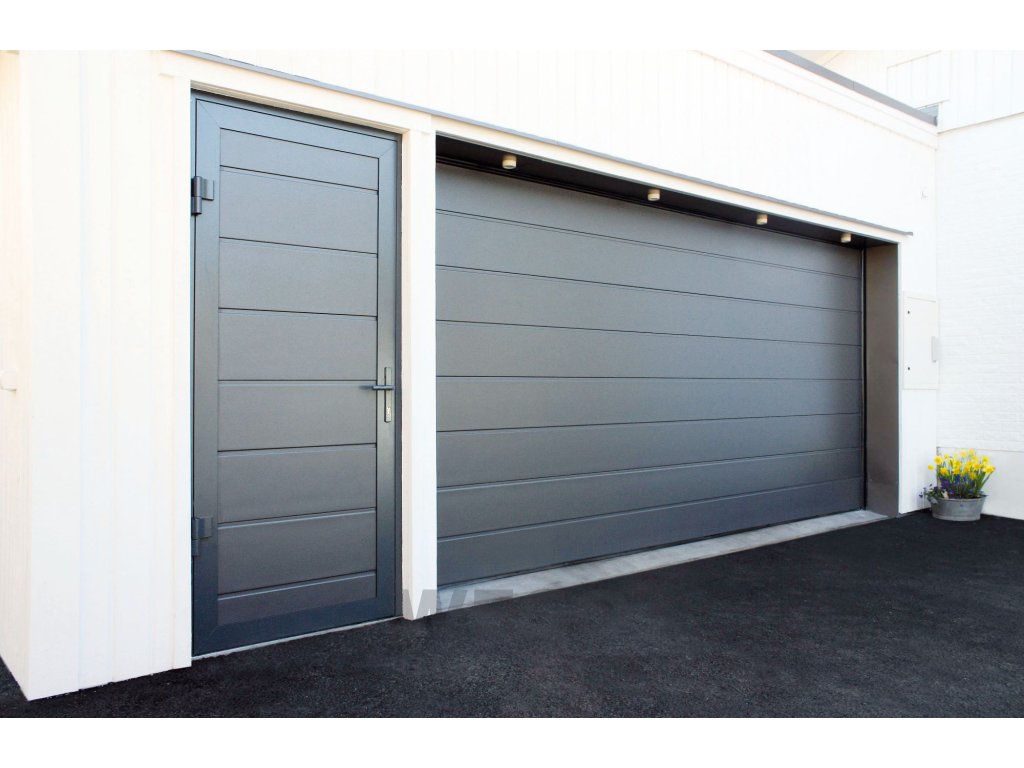 Zweiflügelige Garagentür nach Maß, Antracit RAL 7016, Glatt, W‑line, ohne mittlere Sicke