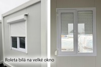 Plastová, s izotermickým dvojjsklem, z obou stran bílá. Okno jednoukřídlé : 970 x 1200 mm, otvíravé.