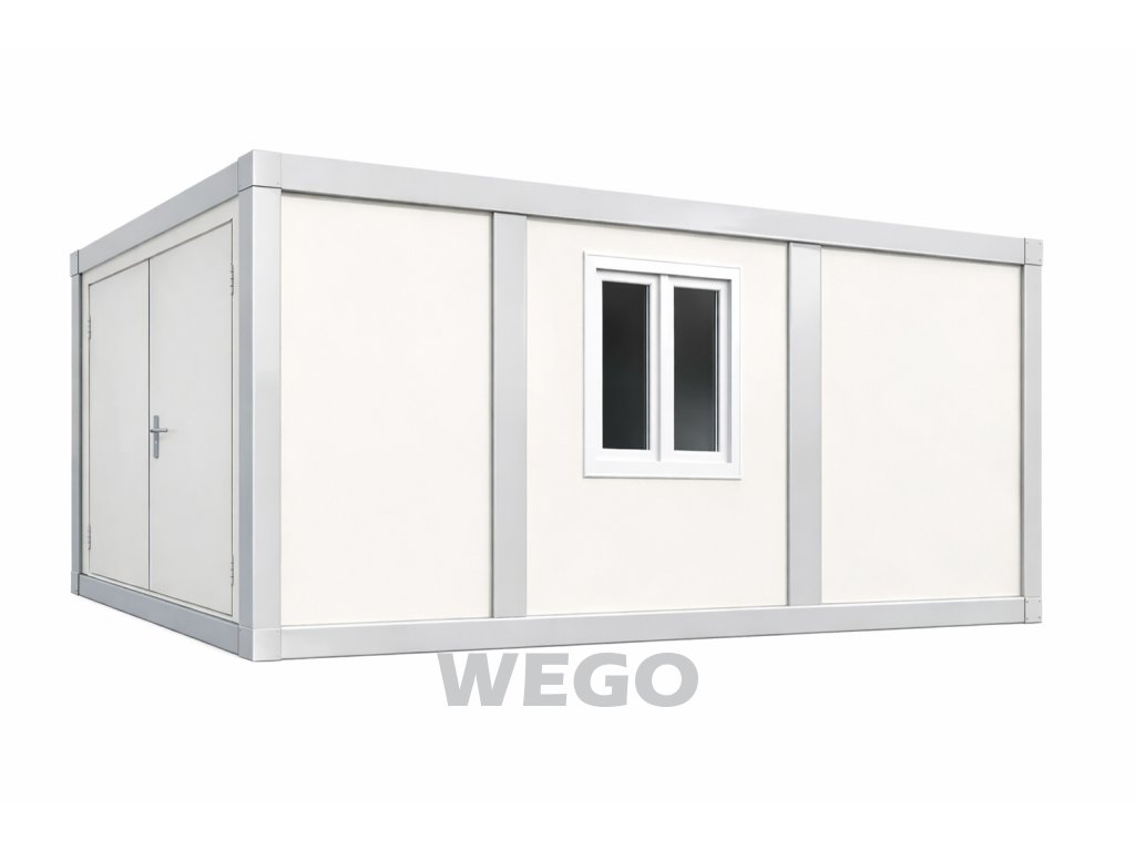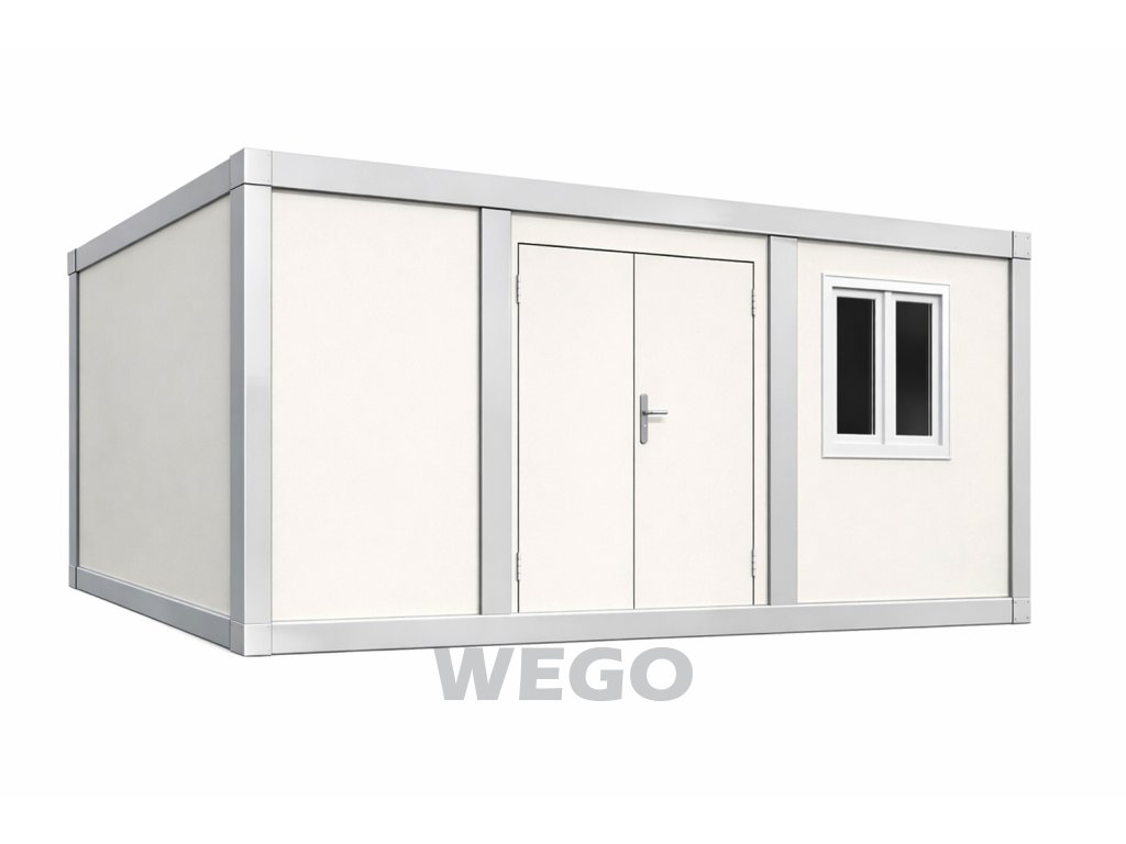 Obytný kontejner 600 x 240 x 257 cm, okno, dvoukřídlé dveře, RAL 9002