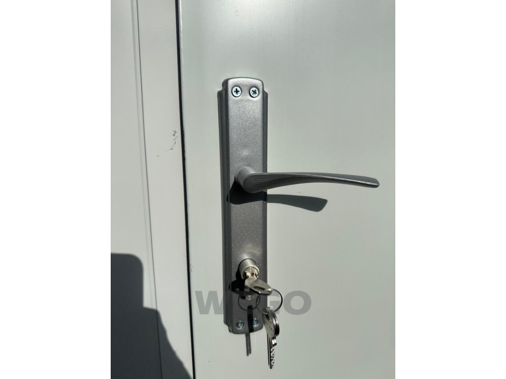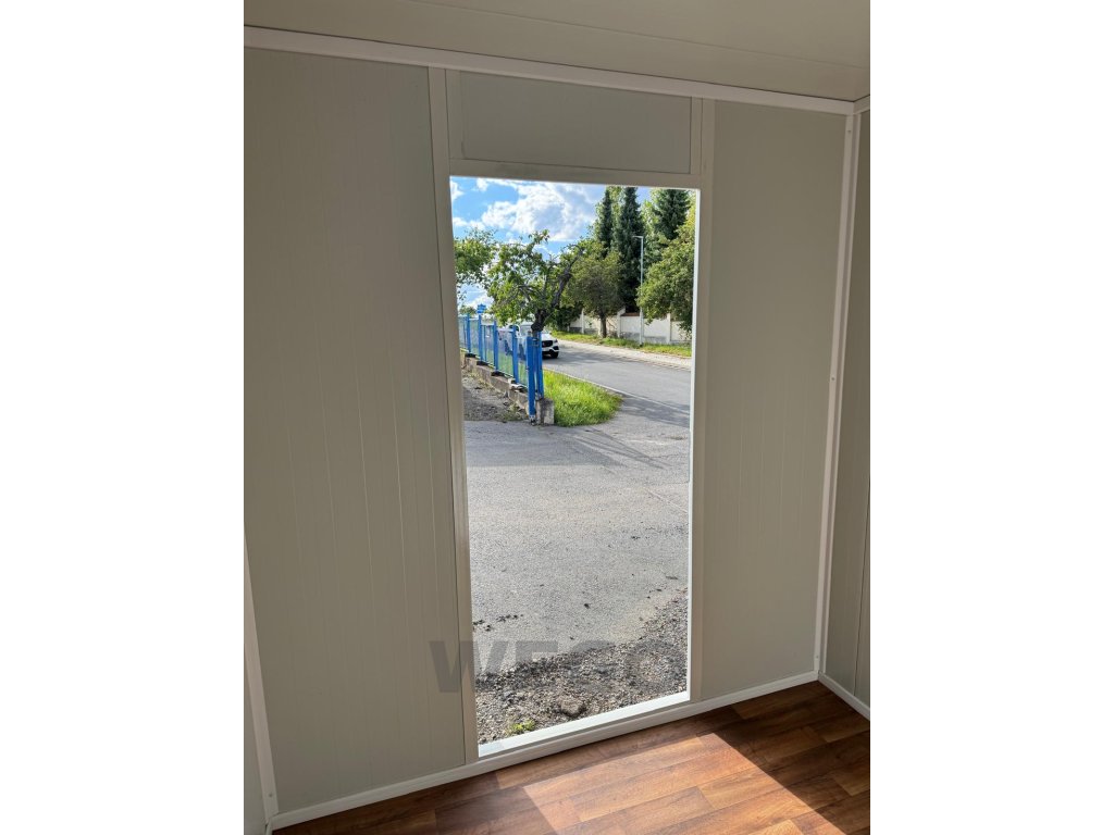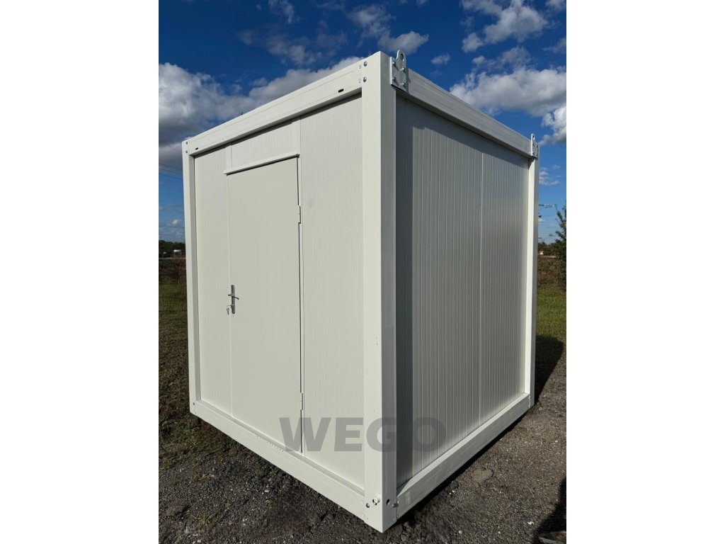 Skladový kontejner 240 x 240 x 257 cm, jednokřídlé dveře, okno, RAL 9002
