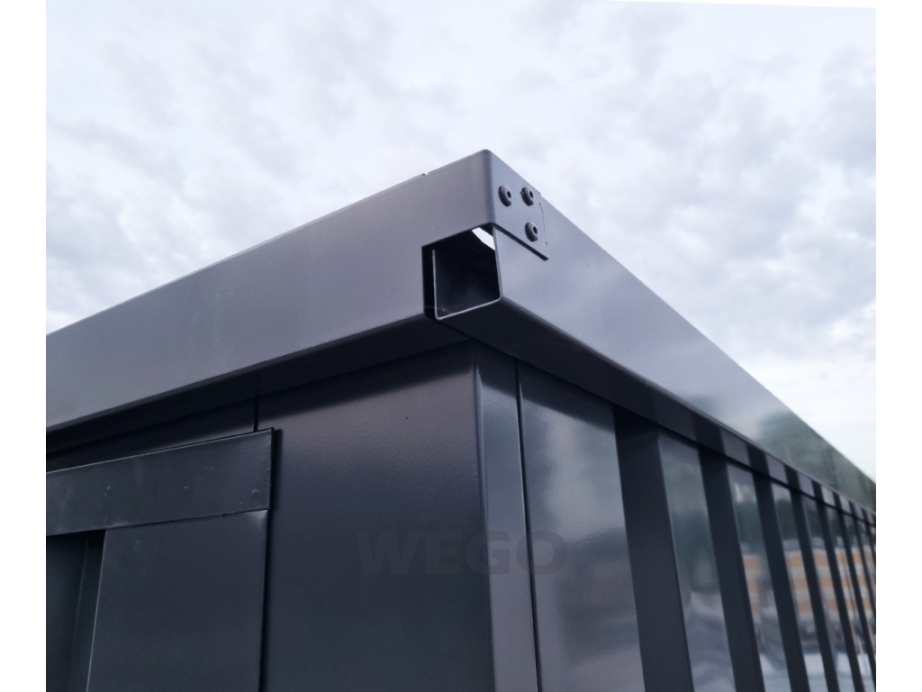 Na rozdíl od klasických dřevěných zahradních domků nevyžaduje žádnou údržbu, není potřeba jej natírat ani ošetřovat. Konstrukce z kvalitní oceli zaručuje vysokou pevnost, odolnost vůči povětrnostním vlivům i mechanickému poškození.