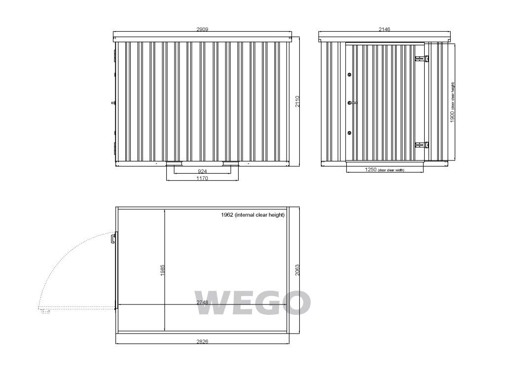 - Vnější rozměr (D × Š × V): 2909 × 2146 × 2110 mm