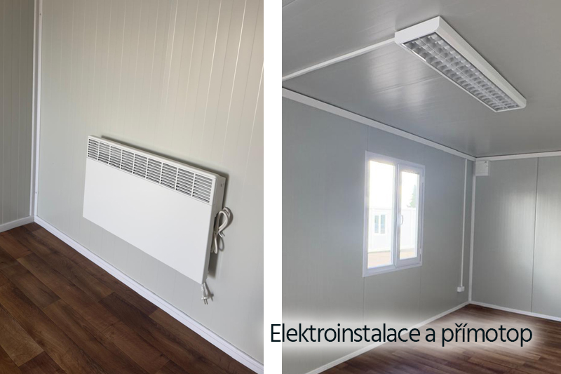 - Izolované: Stěny tvoří sendvičové panely EPS 50 mm, střechu panely PUR 40 mm, izolace podlahy: 80 mm minerální vata.